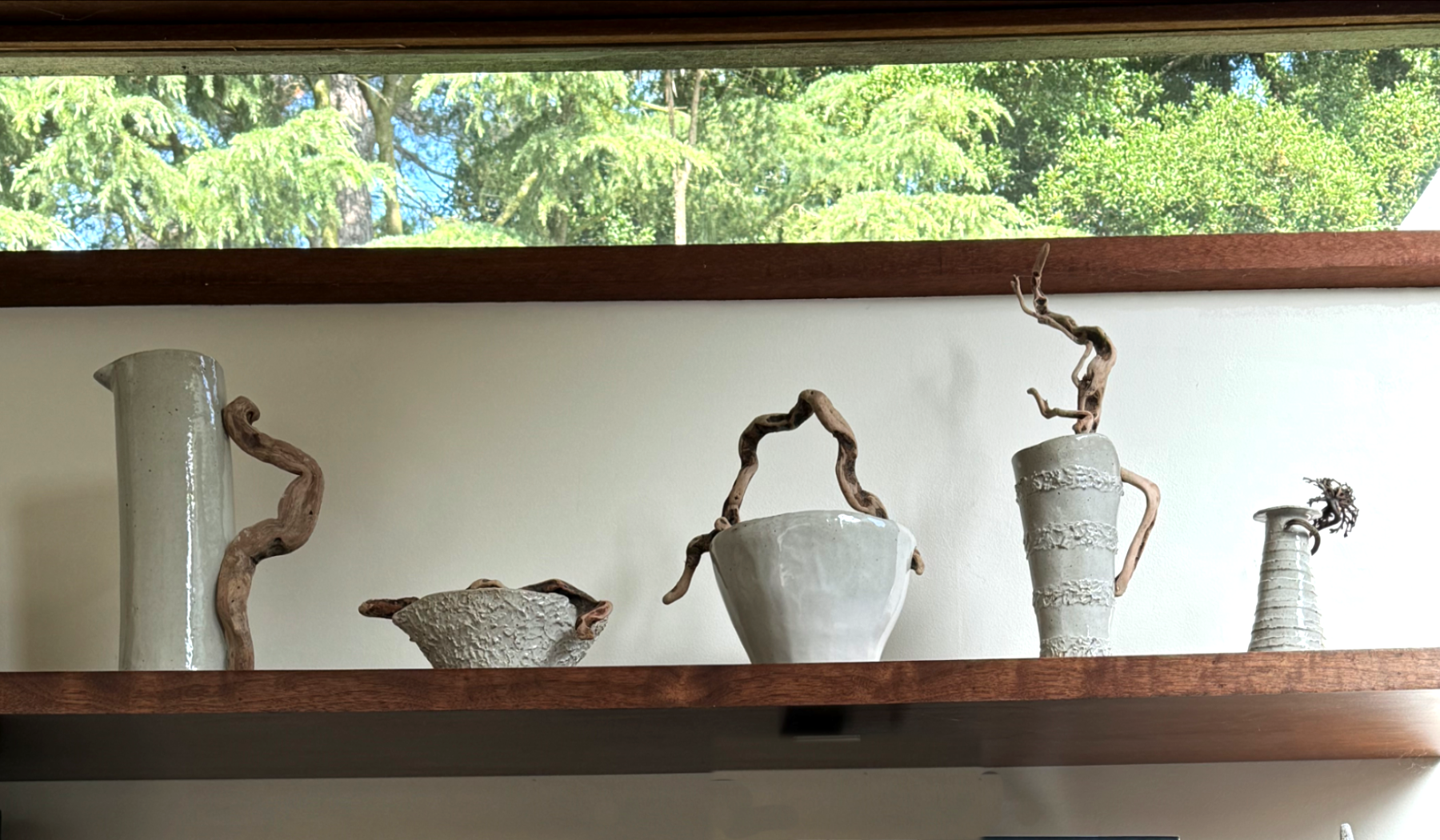 Combining the organic materials of clay and wood, Robin experimented with structure and form by creating pieces made with driftwood collected from her walks on the beach. A portion of proceeds go to One Tree Planted, an organization that supports and inspires reforestation. For more information please visit https://onetreeplanted.org
